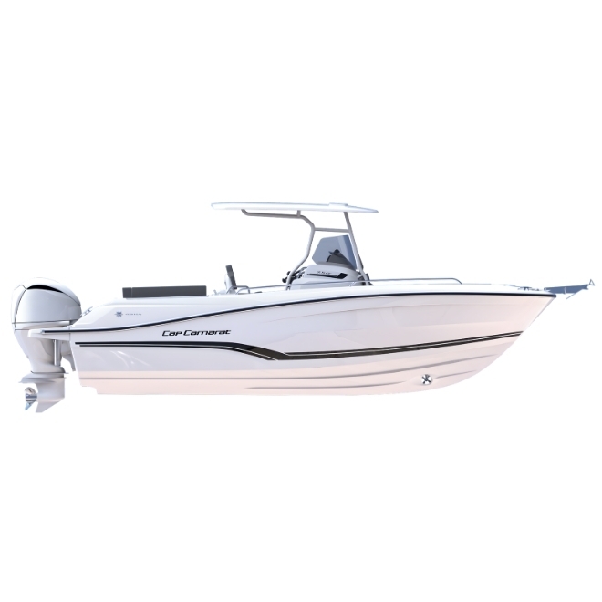 Jeanneau Cap Camarat 7.5 CC Serie 3 este o barca cu consola centrala moderna, proiectata pentru performanță, manevrabilitate și versatilitate pe apă. Cu un design sportiv și carenă în V profundă, acest model oferă stabilitate excelentă, confort în navigație și siguranță chiar și în condiții mai dificile.