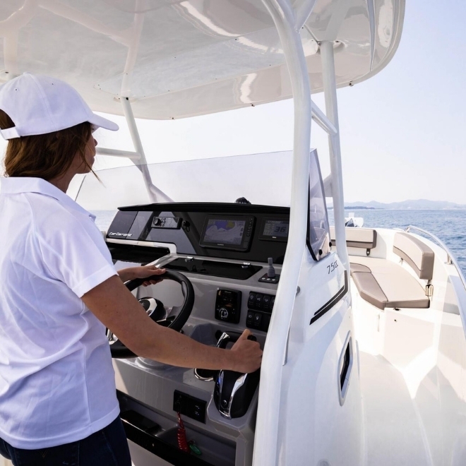 Echipată cu motor outboard puternic de pana la 300 CP, Cap Camarat 7.5 CC Serie 3 oferă accelerație rapidă, viteză maximă ridicată și eficiență optimizată a consumului. Este ideală pentru pasionații de pescuit, croaziere de coastă sau activități nautice sportive, fiind o alegere versatilă și fiabilă pentru cei care caută performanță și libertate pe apă.